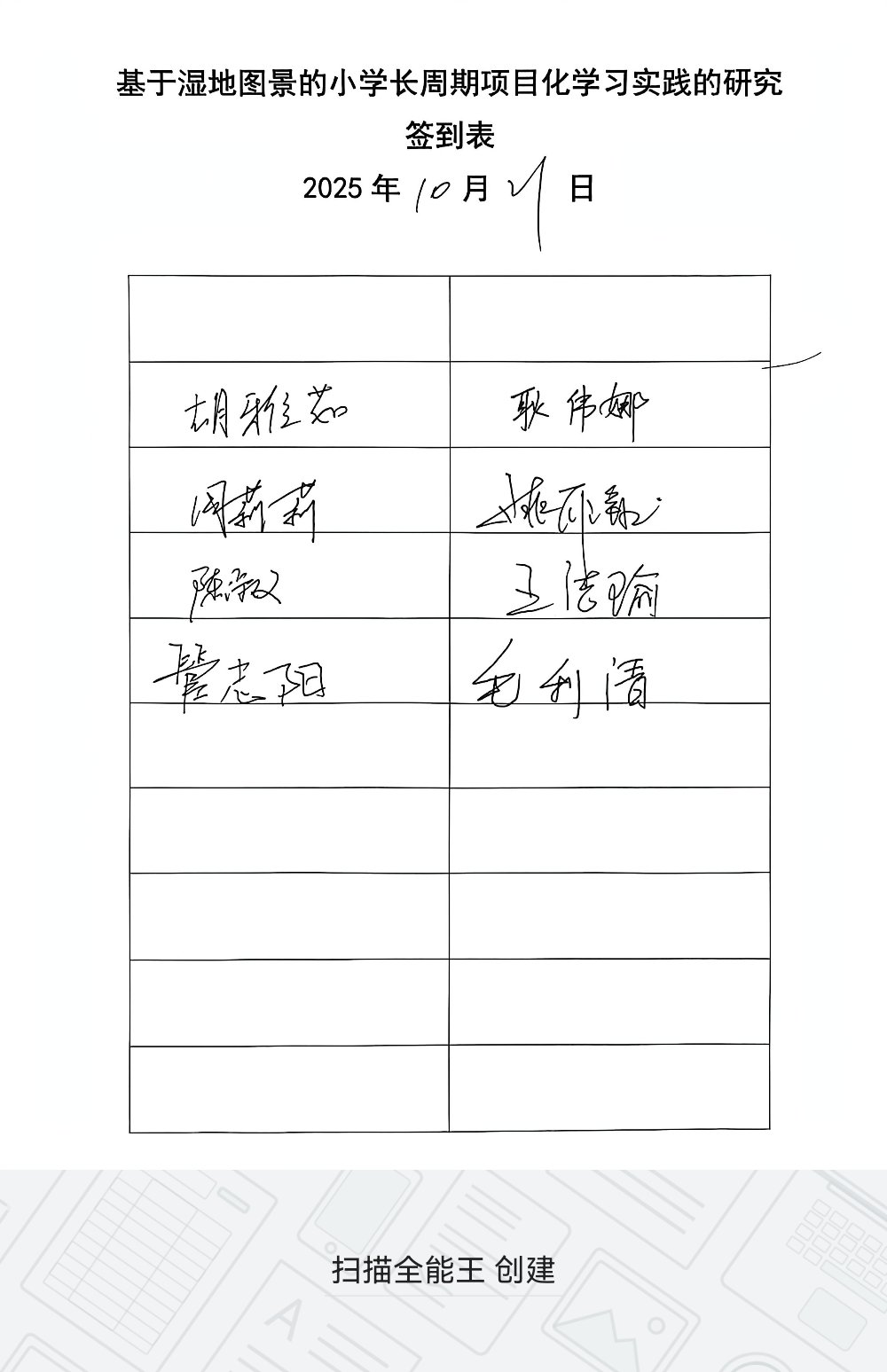 近日,省规划重点课题《基于湿地生态图景的小学长周期项目化学习实践的研究》(立项编号:B-b/2024/03/200)课题组于2025年10月在学校会议室开展了以“项目学习模型论证与手册优化”为主题的研究活动,课题组成员、湿地生态专家及项目化学习教研员共同参与,在解决长周期项目化学习痛点问题上取得阶段性突破。